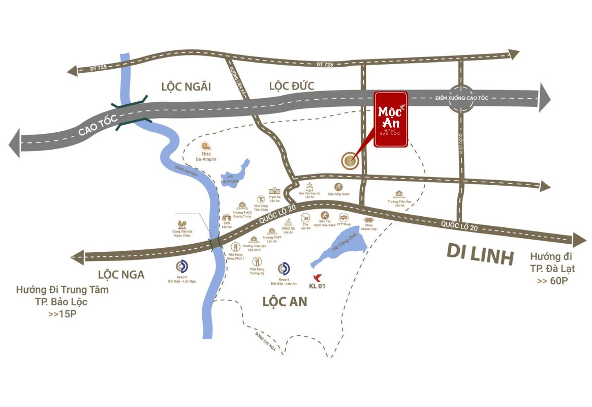 Vị trí đắc địa nằm ngay trục Quốc Lộ 20 nối TP HCM – ĐÀ LẠT. Dễ dàng kết nối các tiện ích ngay tại trung tâm TP Bảo lộc và các địa điểm du lịch nổi tiếng.